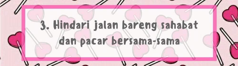 Jika sahabatmu bersikap dewasa dan berjiwa besar, mungkin ia nggak akan mempermasalahkan jika ingin jalan bareng teman-teman dan pasangannya. Namun, jika kamu ingin jalan bareng dengan sahabat dan pacarmu, sebaiknya tunggu sampai sahabatmu ini sudah mempunyai pacar baru. Satu lagi, jangan hanya double date, ya. Sebaiknya ajak teman-temanmu yang lain agar perjalananmu semakin ramai.
