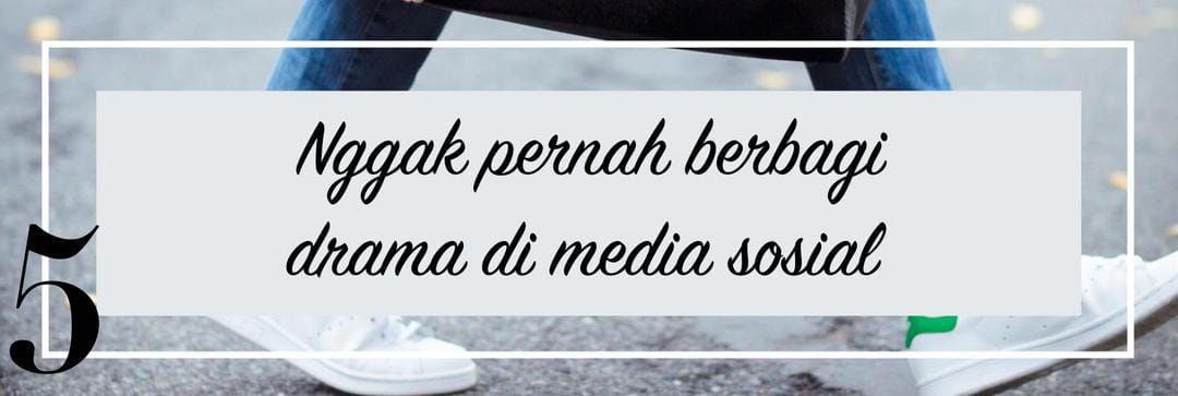 Mereka yang bahagia dalam hubungannya juga tak akan berbagi drama di dunia maya, di mana semua orang bisa menjadi saksi. Bagi mereka, penting untuk saling menjaga aib masing-masing. Lagi pula berdrama di media sosial mengenai pasangan hanya akan menunjukkan bahwa ada komunikasi yang tidak terjalin dengan baik dalam hubungan tersebut.