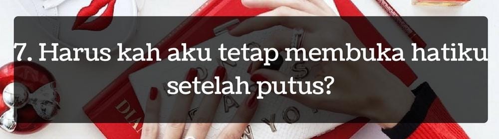 Kalau kamu tetap membuka hati untuknya, buat apa kamu putus? Namun di satu sisi, nggak masalah kalau kamu masih berhubungan baik setelah berpisah. Kuncinya adalah kamu harus tahu batasan-batasan hubunganmu dengan calon mantan pasanganmu