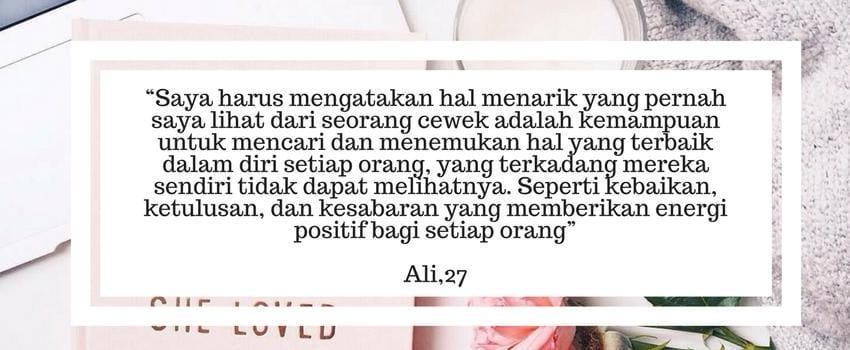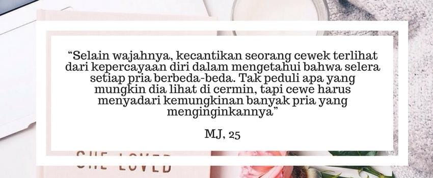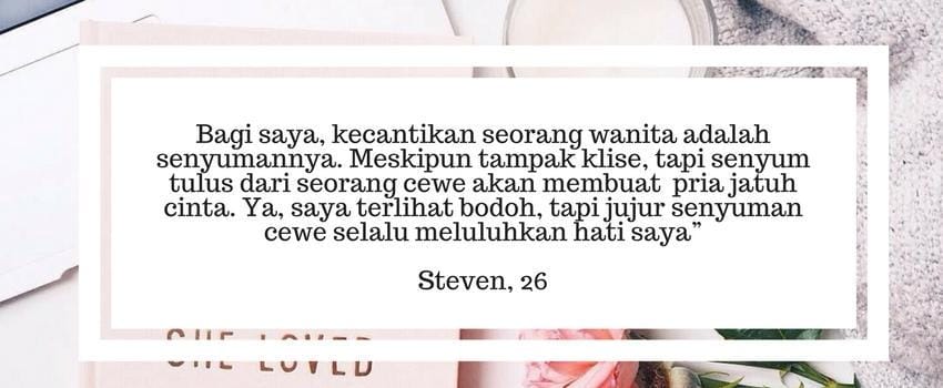 Beruntung banget buat kamu yang memiliki pasangan yang nggak banyak berkomentar masalah penampilan, kamu bisa bebas menjadi diri sendiri dan mengeksplorasi berbagai gaya berpakaian. Buat gambaranmu, seperti ini pandangan cowok tentang kecantikan seorang cewek. Ternyata, kecantikan itu nggak melulu tentang penampilan, lho.