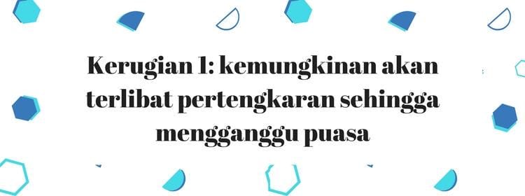 Namanya menjalani hubungan pacaran, pasti erat hubungannya dengan komitmen dan segala tuntutan. Nah, karena tuntutan-tuntutan itulah, maka ada salah satu pihak yang nantinya cepat atau lambat akan merasa dikecewakan. Kalau sudah kecewa pasti ngambek, ujung-ujungnya bertengkar. Kalau berantem, sudah pasti akan ada adu argumen dan melibatkan emosi. Tahu sendiri kan, emosi bisa mengurangi pahal puasamu di bulan Ramadan?