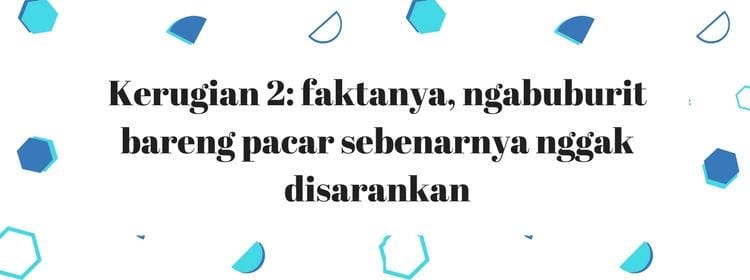 Dengan sengaja ngabuburit bareng pacar, kamu akan menyakiti hati banyak jomblo di luar sana, terlebih yang melihatmu dan dia sedang berduaan. Kelakuanmu dan pasangan, tanpa sengaja akan membuat mereka iri dan bisa jadi menyumpahi kamu. Bukankah ini juga salah satu duka? Apalagi kalau tanpa sengaja kalian tengah bermesraan, duh mending nggak ketemu dulu deh selama Ramadan.