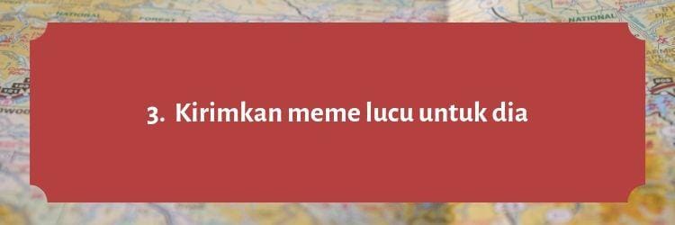 Agar obrolan kamu dengannya tidak melulu membahas sesuatu yang diulang-ulang, cobalah kirimkan meme lucu untuknya agar obrolan kamu bersamanya lebih fun dan nggak kaku. Ketika hubunganmu sudah lama dan nggak jaim lagi, kamu bisa juga lho membuat meme pacar kamu yang kamu edit sesuka hati kamu. Tapi kalau hubungan kamu masih baru disarankan jangan dulu ya, mungkin pasanganmu bisa saja merasa dijatuhkan dengan leluconmu itu.