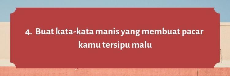 Kalau yang satu ini disarankan banget nih kamu melakukan setiap harinya, karena dengan mengirimkan kata-kata manis untuknya dia akan merasa bahwa dirinya merupakan seseorang yang sangat berharga untuk kamu.