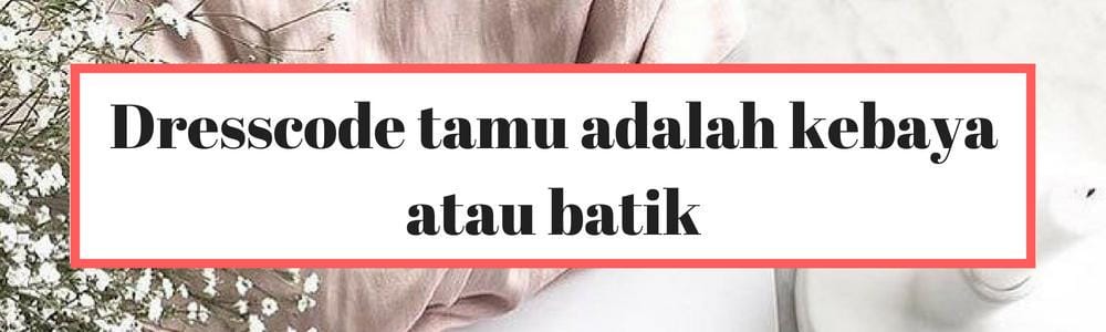 Kebanyakan tamu yang akan dijumpai mengenakan batik atau kebaya. Tapi sebenarnya nggak ada aturan yang memaksa kamu harus menggunakan batik ataupun kebaya seperti tamu-tamu lainnya. Apa pun yang kamu kenakan, kamu harus memprioritaskan kenyamanan. Sebab di pesta pernikahan pasti kamu akan makan dengan porsi yang lebih banyak dari biasanya.
