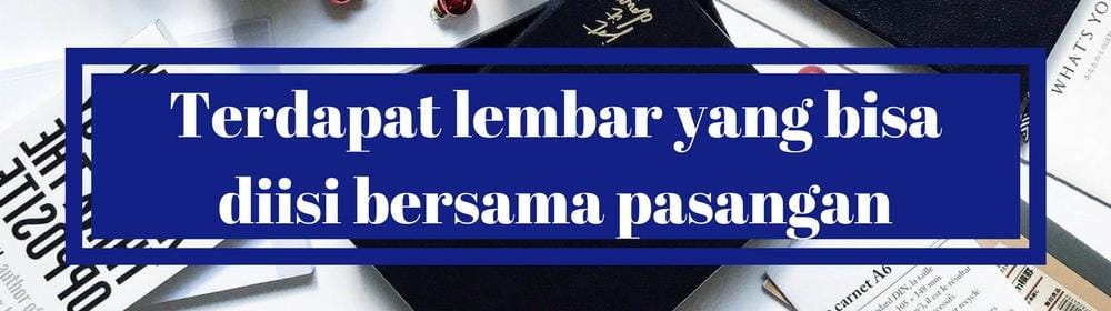 Nggak hanya lewat materi yang disampaikan, kamu dan pasangan juga bisa saling belajar lewat lembar-lembar dan pernyataan yang harus kalian isi. Mulai dari membaca bahasa cinta, jenis attachment yang dimiliki hingga rencana masa depan bisa kamu diskusikan lewat buku ini.