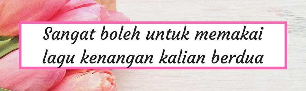Resepsi pernikahan adalah salah satu wujud perayaan cinta kalian berdua yang akhirnya berhasil ketemu di pelaminan. Tak ada salahnya melibatkan lagu-lagu yang menjadi perekat hubungan kalian di awal masa pacaran atau PDKT. Sambil mengenang saat awal jatuh cinta sambil bergandengan tangan di pelamian, mana yang lebih romantis dari ini?