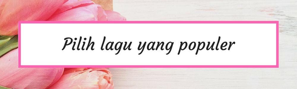 Pertimbangkan untuk memilih lagu yang memang punya banyak penggemar. Dengan alasan para tamu akan lebih senang dan bisa ikut bernyanyi bersama kebahagian kalian di pelaminan. Makin ramai, makin senang. Bandingkan dengan lagu yang jarang orang tahu, tamu pastinya akan cuma mendengarkannya saja dan kemeriahan jadi kurang.