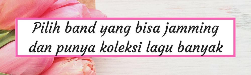 Memilih penyanyi dan grup musik di pernikahan juga hal penting untuk dilakukan. Artinya, dengan pemusik yang bagus, mereka akan lebih mudah menerima request lagu. Tamu senang, pengantin juga senang.