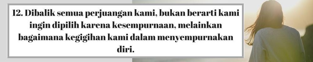Namun, tetaplah terima kekurangan kami. Semandiri apapun kami, kami hanya bisa lebih tangguh, bukan berarti bisa hidup sendiri.