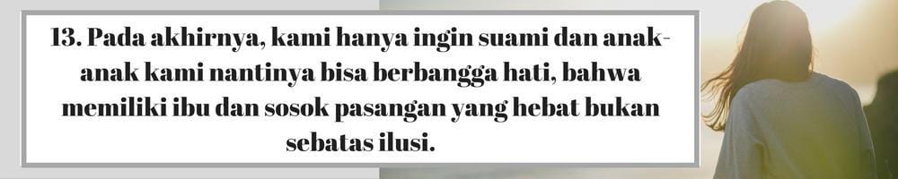 Kemandirian yang kami tunjukkan bukan semata-mata menunjukkan kehebatan kami. Saat ini, kami justru tengah berjuang demi mewujudkan masa depan yang baik untuk keluarga kami, pasangan kami dan tentunya, anak-anak kami.