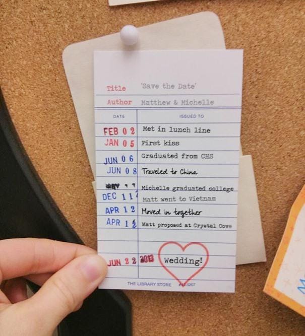 4. Nah, kalau undangan yang ini simpel, sih. Dibuat mirip dengan kartu peminjaman perpustakaan. Cocok untuk kamu si 'kutu buku'!