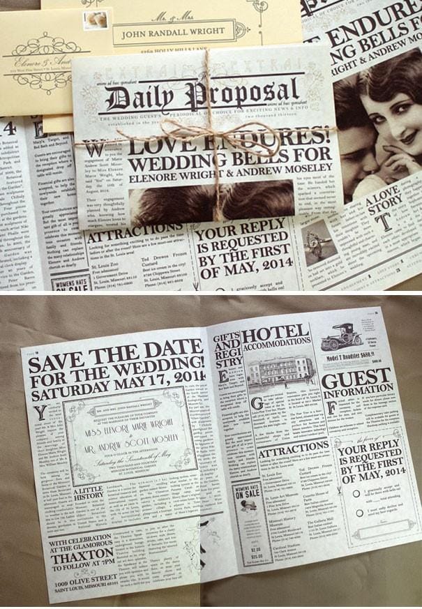 14. Undangan pernikahan a la koran kuno. Hmm, lucu juga, ya.