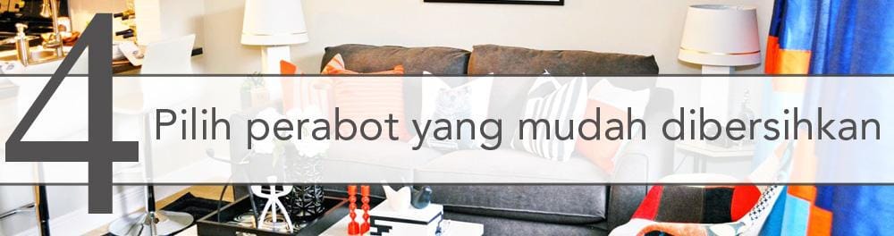 Agar pekerjaan membersihkan rumah tidak terasa berat, gunakan perabot rumah tangga yang mudah dibersihkan. Contohnya ketika memilih taplak meja, pilih yang berbahan dasar plastik supaya kalau ada kotoran menempel tidak sulit membersihkannya. Tentunya membersihkan kotoran di taplak meja dari plastik lebih mudah daripada yang berbahan kain.