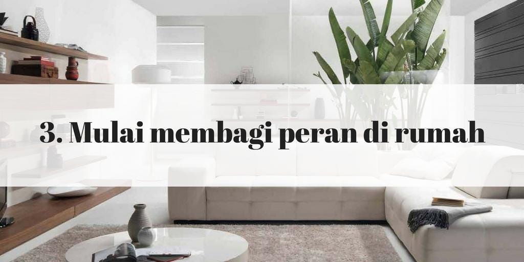 Untuk berbagai kebutuhan rumah tangga, kamu dan pasangan tentunya harus membagi peran agar pekerjaan bisa terbagi rata. Kalian bisa membagi peran di rumah sesuai dengan keahlian masing-masing, misal, kamu mencuci piring, sedangkan suamimu membersihkan kamar mandi.