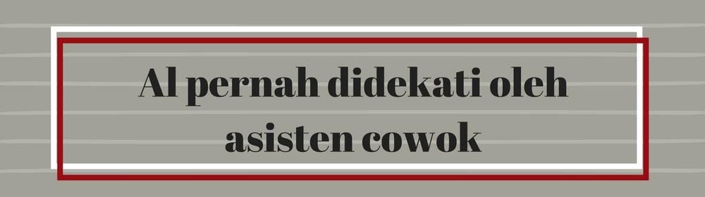 Kalau kamu masih ingat, pada bulan April lalu Al pernah didekati oleh seorang asisten cowok. Kadang, orientasi seksual seseorang nggak selalu bisa dilihat dari penampilannya. Dianggap sebagai cowok normal, asisten tersebut justru memanfaatkan kesempatan ketika dia dan Al tidur bersama. Untungnya Al langsung ambil tindakan cepat.