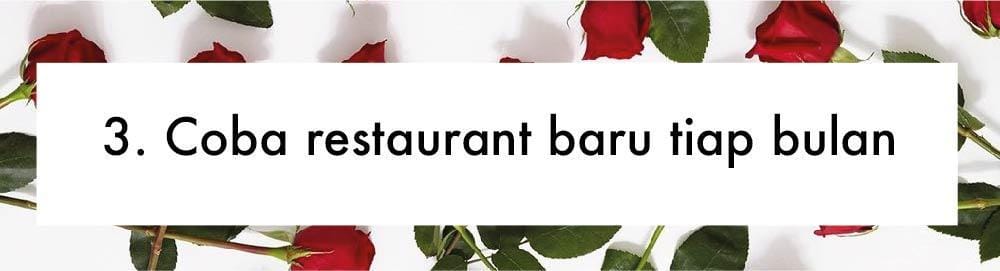 Menjadwalkan rutinitas tiap bulan ini membuat kamu dan pasangan memiliki kegiatan rutin dengan mencoba makanan-makanan baru. Selain itu, atmosfer setiap restoran akan berbeda sehingga kamu akan nggak merasa bosan dengan hal sama. Kamu bisa mencoba restoran dari berbagai macam daerah, negara, dengan suasana yang juga berbeda.