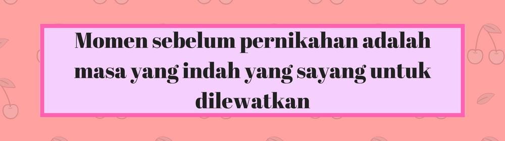 Dewasa ini persiapan pernikahan tak bisa lepas dari satu sesi pre-wedding. Kebanyakan pasangan berlomba-lomba mencari konsep atau tema seunik mungkin. Setidaknya hasil pre-wedding yang memuaskan tak hanya sebagai pelengkap dokumentasi, tapi juga jadi kebanggaan yang ditunjukkan ke kerabat dan teman. Seolah membagi rasa lelah dan bingung untuk sesi ini tak jadi masalah untuk kamu yang hidup di masa milenial. Bahkan sebagian orang menganggap proses ini menjadi hal wajib untuk dilakukan.