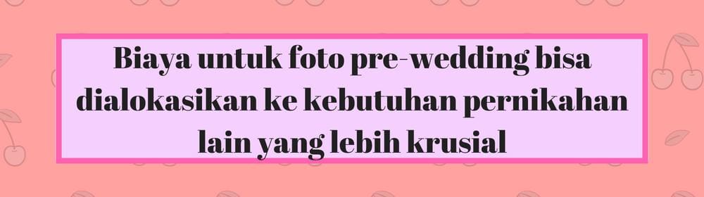Paling tidak biaya bersihnya lebih dari 2 jutaan juga. Sedangkan meniadakan sesi ini bugdet pernikahan dengan sendirinya berkurang. Sebab dananya bisa kamu salurkan ke bagian lain seperti sewa gedung, katering atau rias pengantin.