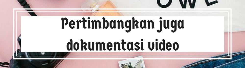 Biasanya fotografer menawarkan satu paket dengan dokumentasi video. Lihat juga hasil karya videonya selama ini. Bicarakan juga video apa yang kamu harapkan untuk mengetahui apakah si vendor sanggup melakukannya. Jika kamu memilih vendor yang sama dengan foto, usahakan untuk meminta harga spesial untuk pemesanan paket foto dan video. Jika kamu harus memilih vendor lain, tentukan bersama pasangan, mana yang lebih penting. Foto atau video. Di vendor yang mana kamu bersedia untuk menghabiskan porsi budget yang lebih.