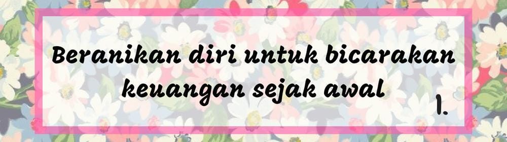 Setiap pasangan yang akan menikah pasti memiliki banyak hal yang harus dibahas sebelum hari pernikahan. Biasanya, hal-hal yang dibicarakan itu hanya menyangkut tentang pesta pernikahan atau cara menyatukan dua keluarga. Satu hal yang sering luput ialah berbicara mengenai pengelolaan keuangan saat berumah tangga nanti.