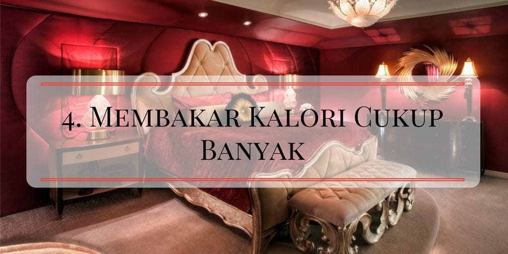 Jika malas berolaraga, berhubungan seksual bersama pasangan juga bisa menjadi pilihan alternatif. Pasalnya, 30 menit berhubungan intim saja sebanyak 100 kalori terbakar dengan cepat, lho! Kalau kamu melakukannya dengan rutin, kamu pun akan membakarnya lebih banyak lagi.