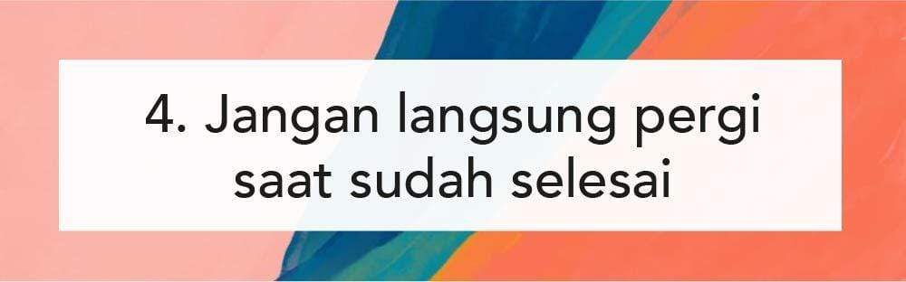 Saat kamu dan pasangan sudah sama-sama selesai melakukan hubungan, jangan sampai kamu langsung meninggalkannya pergi. Nikmati quality time bersama pasanganmu. Karena keromantisan hubungan nggak hanya saat ingin melakukan seks dan sedang melakukannya, namun setelah melakukan seks juga kamu harus menikmatinya denga cara berpelukan atau saling bercengkrama.