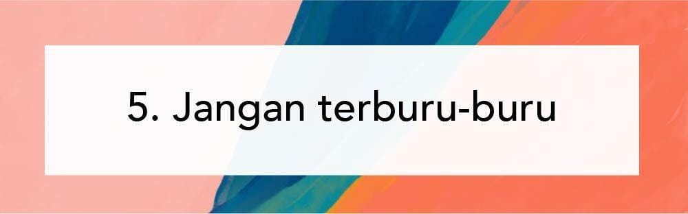 Melakukan hubungan seksual adalah hal yang harus dinikmati. Mengikuti alur secara perlahan dan mengikuti ritmenya. Jangan sampai terburu-buru karena malah hanya akan menjadi nggak puas dan nggak akan senikmat ketika kamu melakukannya secara santai.