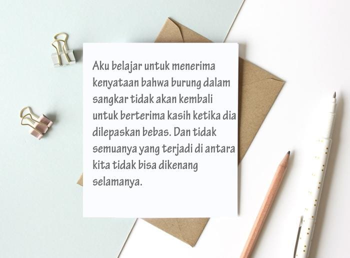 Karena tak ada lagi yang bisa kulakukan untukmu selain doa yang tulus kuucap dari hati. Selamat tinggal, semoga kita berbahagia meski tak lagi bersama.