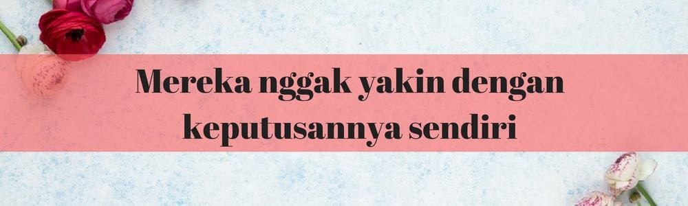 Kebanyakan orang nggak tahu dan mengerti jalan hubungan asmara yang sehat. Biasanya, seseorang akan mengikuti dari teladan yang ia pilih, seperti orangtua atau saudaranya. Jika dirinya melihat orangtuanya sering bertengkar dan salah satu pihak sering berlari dari masalah, besar kemungkinan ia akan meniru sikap itu. Laki-laki yang tumbuh dalam lingkungan seperti itu, merasa lebih mudah berlari dari masalah, seperti putus darimu. Ketika sudah dapat berpikir jernih dan merindukan sosokmu dalam kehidupannya, ia mulai mempertanyakan keputusannya, "Apa putus denganmu adalah tindakan yang tepat atau nggak?" Kebingungannya pun membuatnya berjalan kembali ke padamu.