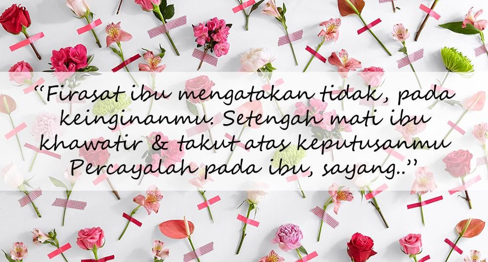 Saat kamu tersenyum saja, ibumu akan sangat senang. Bukan berati harus pura-pura senyum saat kamu punya masalah. Maksudnya, berceritalah dengan ibumu hal-hal yang sudah membuat hatimu berbunga-bunga, berbagilah kebahagiaanmu dengannya. Percayalah, ibumu akan merasakan hal yang sama. Jangan kurangi senyumanmu padanya sedikitpun. Berkatalah lembut yang menyenangkan hati ibumu. Sering-seringlah menggenggam tangannya selagi masih bisa. Entah besok atau lusa, ibumu masih bisa kau cium tangannya dan tersenyum padamu. Ayolah lekas peluk ibumu dan bisikkan di samping telinganya bahwa kamu amat menyayanginya.