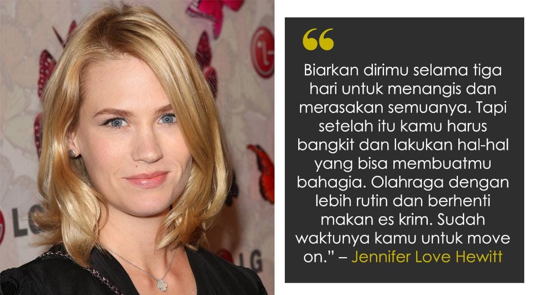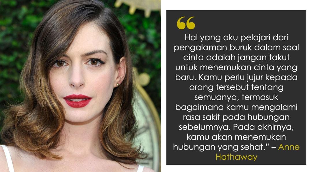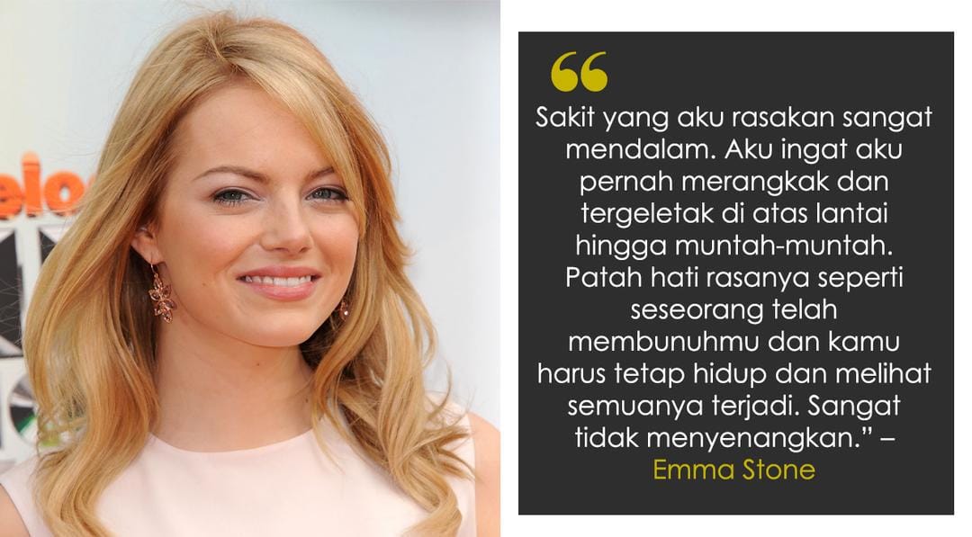 Semua orang pasti pernah mengalami patah hati, termasuk bintang Hollywood. Meski mereka tampak bersinar dan dikelilingi oleh banyak orang yang mencintainya, mereka juga membutuhkan waktu untuk kembali bangkit setelah hubungan percintaannya kandas. Kini, mereka siap berbagi nasihat untuk kamu baru putus dari pacar. Disimak, yuk!
