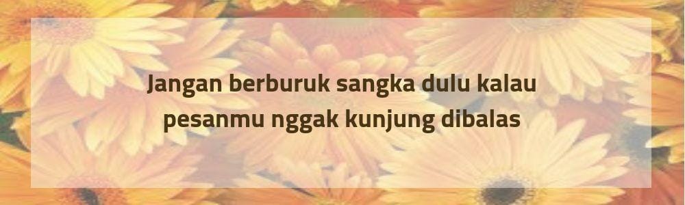 Menunggu memang aktivitas yang menyebalkan. Ketika saat ini calon pasangan atau pasanganmu nggak kunjung membalas pesanmu, beri mereka waktu. Buang jauh-jauh rasa curiga, karena mungkin saja saat ini mereka sedang mengerjakan sesuatu yang urgensinya lebih tinggi dari balasan pesanmu.