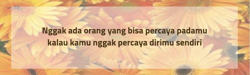 Rasa percaya itu dimulai dari dirimu sendiri. Emang nggak gampang untuk bisa menerima hal-hal jelek oleh diri sendiri. Tapi, untuk bisa mendapatkan hubungan yang sehat baik dengan dirimu sendiri ataupun orang lain, hal ini harus kamu lalui. Sebelum menuntut orang lain untuk percaya dan mengerti kamu, kamu harus melakukannya terlebih dahulu.