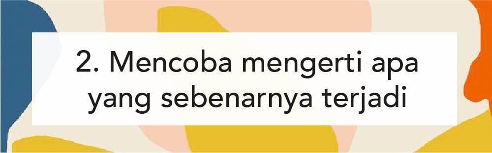 Ketika kamu sudah mulai melepaskan emosi yang kamu rasakan, saatnya kamu mencerna segala hal yang terjadi padamu. Pengkhianatan bukanlah hal yang ringan, rasa kecewa pada seseorang yang sudah kamu anggap spesial akan memberikan luka yang sangat dalam. Saatnya kamu mencerna apa yang sebenarnya terjadi, kamu bisa meminta sahabatmu menjelaskannya agar permasalahannya menjadi jelas.