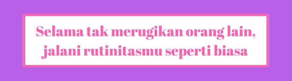 Kadang cara terbaik untuk menghadapi orang yang tak suka dengan kita adalah dengan melakukan segala sesuatunya secara normal seperti biasa. Lakukan rutinitasmu seperti sedia kala. Seolah-olah kamu tak pernah terganggu olehnya. Oke, mungkin kamu sakit hati dan terluka, tapi berusahalah tegar. Tunjukkan kalau kamu punya kualitas diri tegar dan tak mudah dijatuhkan.