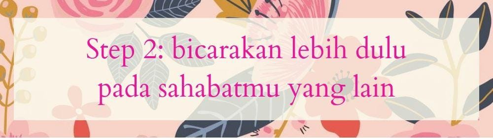 Langkah selanjutnya ialah coba bicarakan lebih dulu mengenai perasaanmu pada orang yang kamu percaya, seperti orangtua atau sahabatmu yang lain. Mungkin saja mereka pernah mengalami hal yang serupa denganmu sehingga mereka bisa memberikan masukan yang baik kepadamu. Apalagi jika salah satu sahabatmu itu memang mengenal dia dengan baik, maka dia bisa lebih objektif saat menilai hubungan seperti apa yang cocok untuk kamu dan dia nantinya.