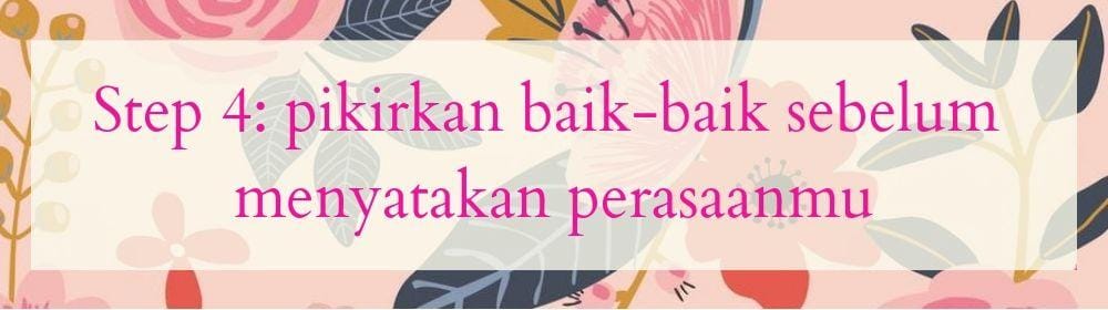 Mungkin dia akan sangat terkejut dengan pernyataanmu, jadi sebaiknya beri dia waktu untuk memikirkannya. Beri tahu dia bahwa kamu nggak perlu jawaban saat itu juga, kecuali jika dia memang sudah siap memberikan jawaban.
