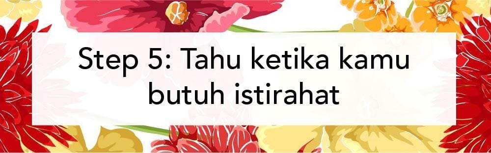 Setiap orang membutuhkan waktu untuk istirahat. Ketika kamu sudah merasakan terlalu lelah dan merasa penat dengan apa yang sedang kamu jalani, kamu berhak untuk beristirahat dari penatmu. Pergi jalan-jalan atau berlibur ke suatu tempat yang lebih mendekatkanmu dengan alam dan kamu akan merasa lebih tenang. Love yourself first adalah kunci membahagiakan diri kamu sendiri.