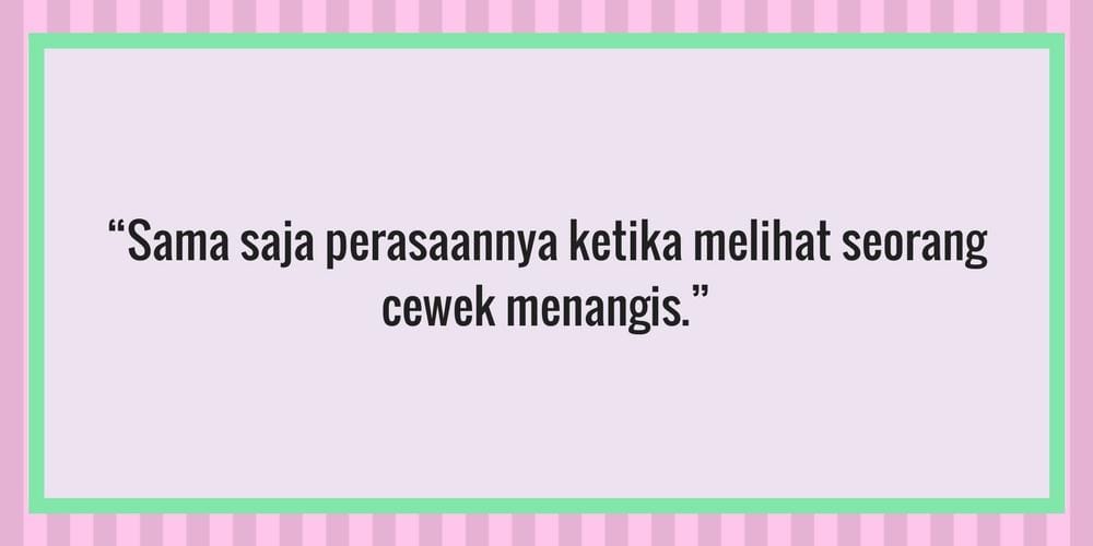 Bagi kebanyakan laki-laki, meluapkan emosi melalui air mata merupakan hal yang sebisa mungkin mereka hindari. Ini karena banyak laki-laki takut dianggap cengeng karena menangis. Bicara soal tangisan laki-laki yang menjadi hal tabu, ada beberapa hal yang perlu laki-laki tahu bahwa jauh di dalam pikiran perempuan, tangisan mereka sama sekali bukan parameter kegagahan seseorang. Menangis itu wajar, nggak pandang jenis kelamin bahkan pekerjaan.
