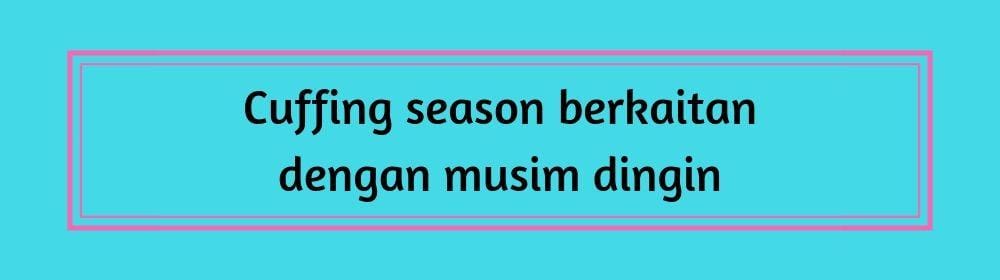 Melansir dari Independent, musim mencari pasangan ini dimulai sekitar awal November, saat musim gugur mulai datang di negara empat musim. Di Indonesia yang beriklim tropis sendiri, musim ini sudah mulai transisi dari musim kemarau ke musim hujan. Mirip, bukan? Kemudian, cuffing season umumnya akan berakhir saat musim salju berganti dengan musim semi, yaitu sekitar pertengahan Februari sampai awal Maret.