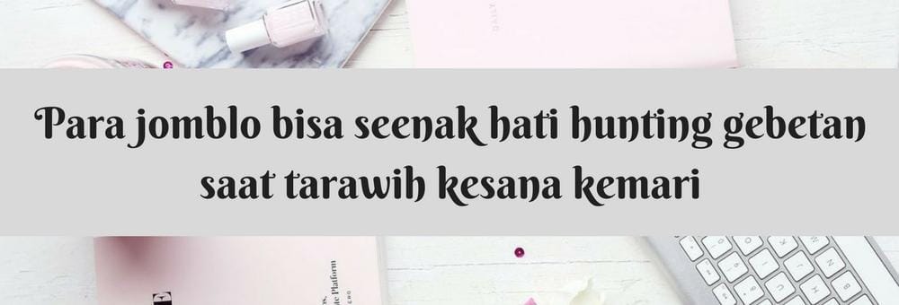 Kalau yang punya pacar, pasti akan dicurigai kalau tarawih kesana kemari sesuka hati, sedangkan yang jomblo bisa seenak hati melakukan hal yang satu ini. Sudah seakan jadi rahasia umum, ketika momen shalat tarawih tiba, maka akan jadi momen hunting gebetan pula bagi para kawula muda. Tetangga-tetangga yang lama nggak kelihatan karena merantau di tanah seberang, jadi pada nongol di masjid lagi. Kalau yang jomblo bakal dicek setiap saat oleh sang pacar, hanya jomblo yang benar-benar bisa menikmati momen yang satu ini.