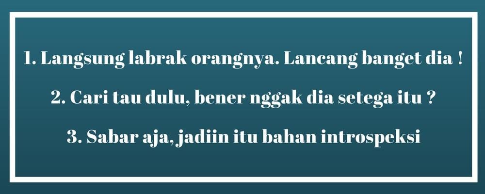 2. Kalau ada yang jelek – jelekin kamu, reaksimu ?
