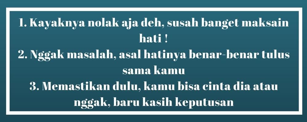 3. Kamu dijodohin ortu sama cowok jelek tapi super baik, tulus, dan menyayangi kamu apa adanya ?