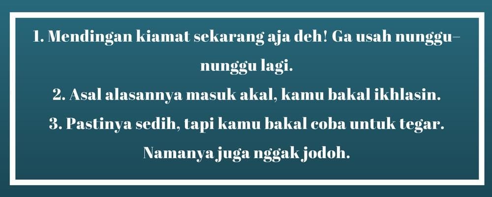 9. Kalau kamu diputusin pacar yang kamu sayangi banget ?