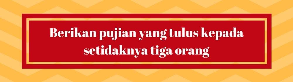 Bisa jadi orang asing yang tak kamu kenal sama sekali, rekan kerja, teman dekat, atau mungkin anggota keluargamu sendiri. Pujian tulus yang datang dari hati akan membuat orang lain bahagia, kebahagiaan itu pun pasti kamu rasakan juga.