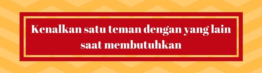 Misalkan, temanmu baru saja lulus dari studi S2 dan sangat butuh pengalaman kerja di bidang seni pertunjukan. Kebetulan kamu juga memiliki teman lain yang sudah lebih dulu bergelut di bidang yang sama. Kenapa tak hubungkan saja keduanya?