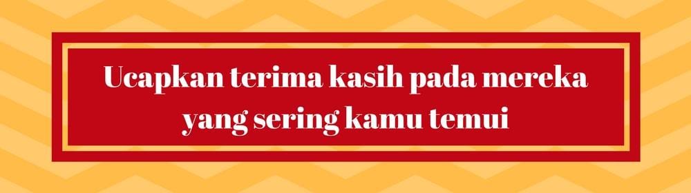Pedulikan mereka yang bertemu dan membantumu setiap hari denga mengucapkan satu kata ajaib, terimakasih. Bisa kepada office boy, waiter, doorman, satpam di bank atau siapapun. Hal ini juga akan membuat mereka merasa dihargai.