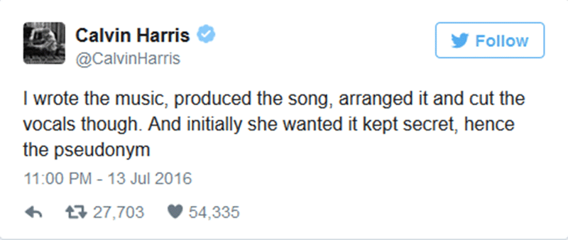 Calvin angkat bicara tentang lagu Calvin dan Rihanna This Is What You Came For yang kabarnya ditulis oleh Taylor. “Aku menulis musiknya, membuat lagunya, menyusunnya dan memotong beberapa vokal. Dan dia ingin merahasiakan ini semua di bawah namanya,” tulis Calvin. Nggak berhenti sampai situ, Calvin juga menulis tentang perasaannya dan pendapatnya tentang mantan kekasihnya tersebut.