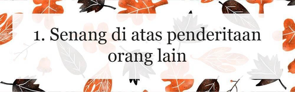 Hal ini mungkin jarang ditunjukkan oleh seseorang. Namun kalau kamu punya teman yang menunjukkan kebahagiannya atas musibah yang tertimpa pada orang lain, sebaiknya kamu mulai menjaga jarak terhadap teman yang seperti ini.